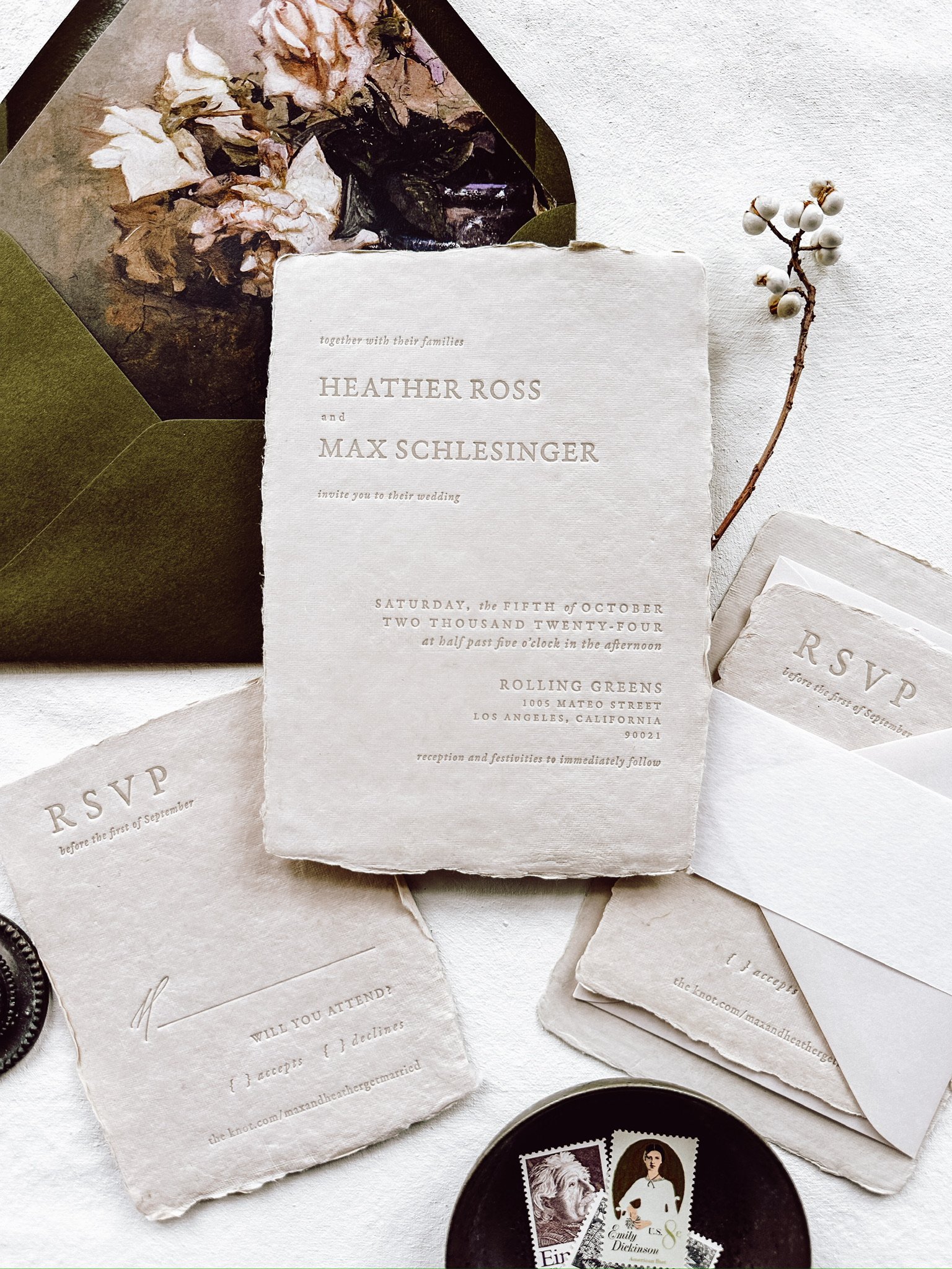 Hello, lovers. Today we are talking about something veryyy important– when to book your wedding stationery designer. If you’re booking Paper Cliché, you’re in luck because our semi-custom process equips you with high end invitations in your hands in as little as 7-8 weeks. That being said, we always recommend giving yourself the gift of more time for the most enjoyable experience. Your wedding invitations are the first touch point of your big day for your guests so they will either leave quite an impression and build excitement… or if they are less thoughtful…. they will do neither of those things. And let’s not forget that they are one of the only tangible keepsakes you’ll actually have to hold onto after the flowers are tossed and the food has been eaten.