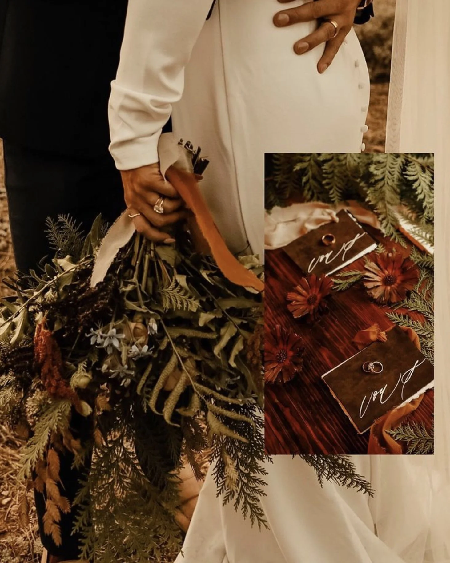 Looking for the perfect forest elopement inspo? Here you go! I created ribbon bound leather vow books and an elopement suite with custom script on delightful deckle edge paper for Kaylee of Madly & Co photography. She hosted a photography work shop up in Big Bear and the results were nothing short of breath taking.