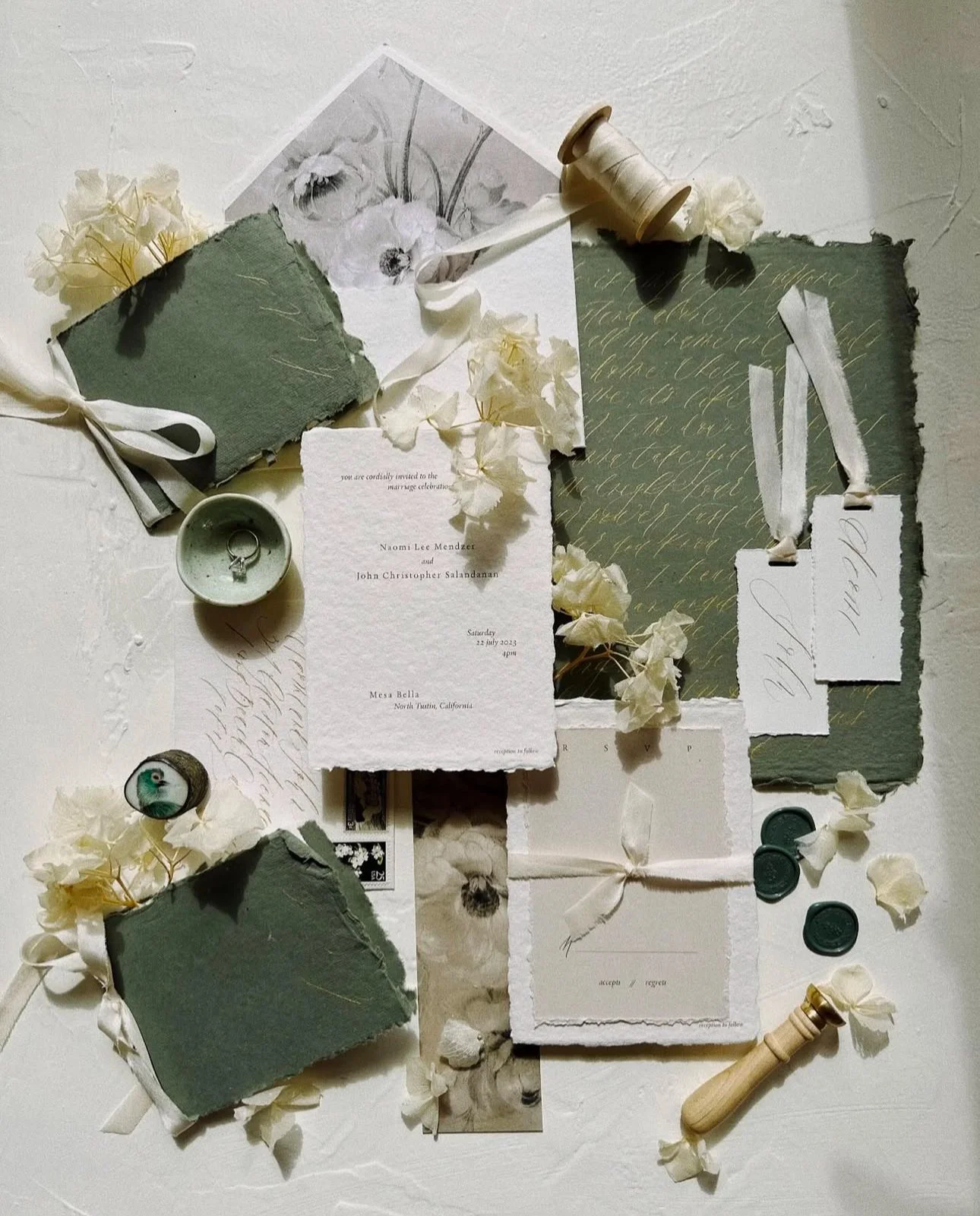 Custom calligraphy and letterpress invitation.