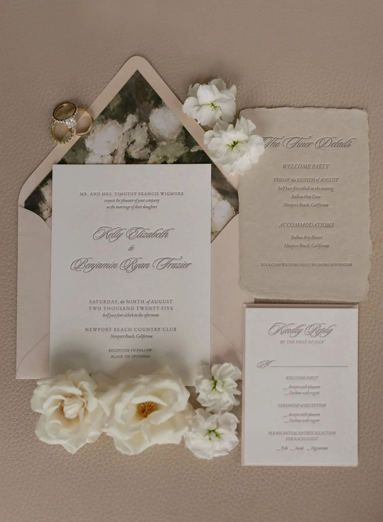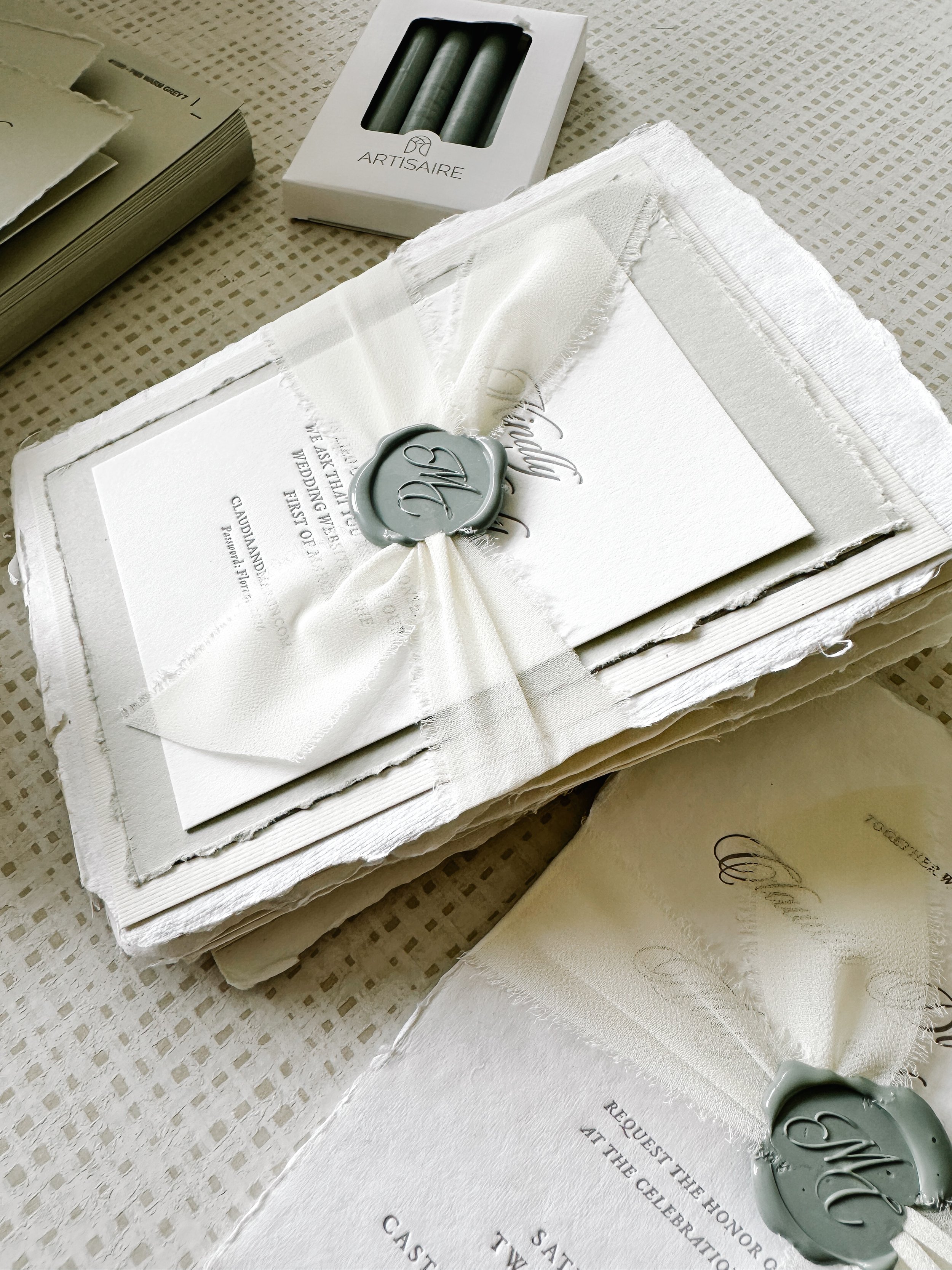 04 // Customize your suite to your liking with your choice of: paper type, print method, text color, envelope color, and then enhance with desired embellishments and design features.