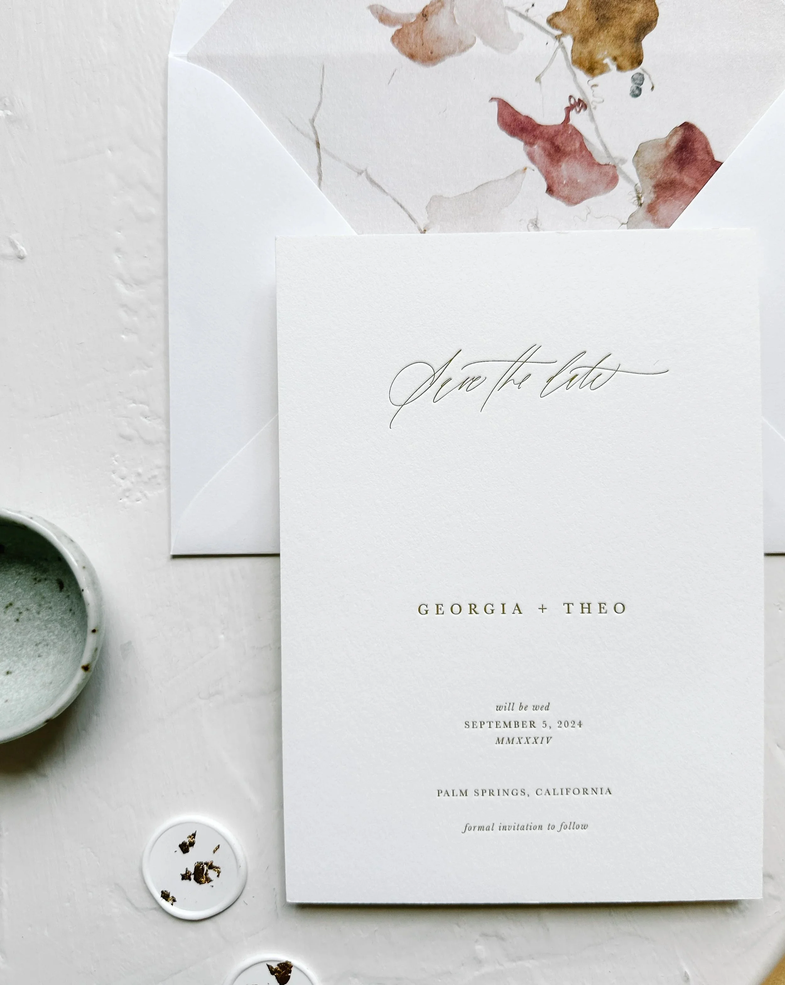 Romantic and timeless, the Georgia Save the Date features ethereal, romantic calligraphy of which can only achieved by hand.