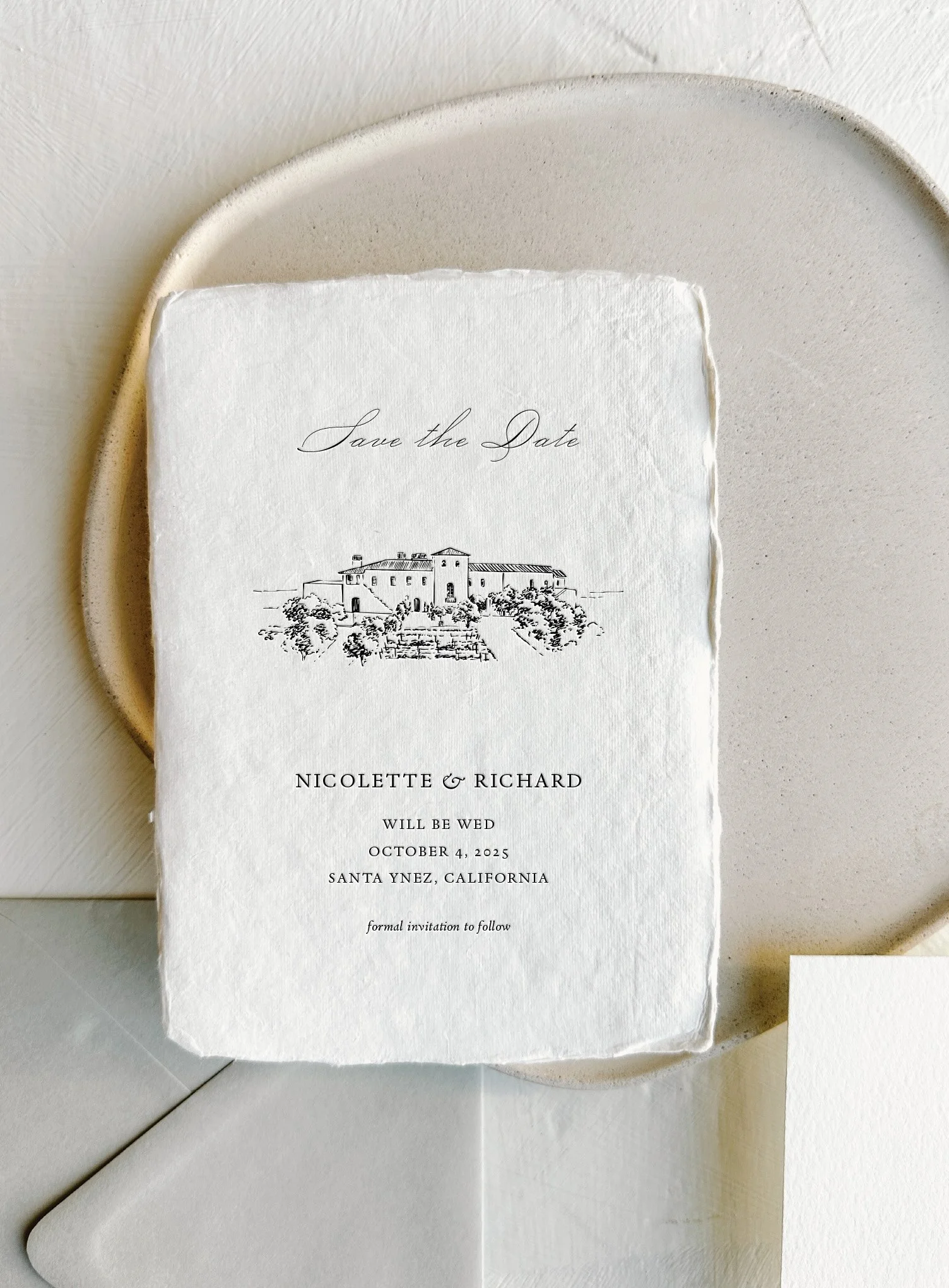 The Nicolette is at once timeless and chic featuring a custom venue illustration and a touch of old world romance.