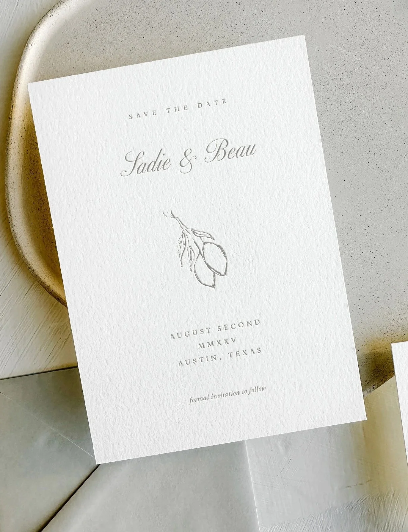 The Dylan Save the Date is the epitome of understated elegance and minimalist romantic paper design.