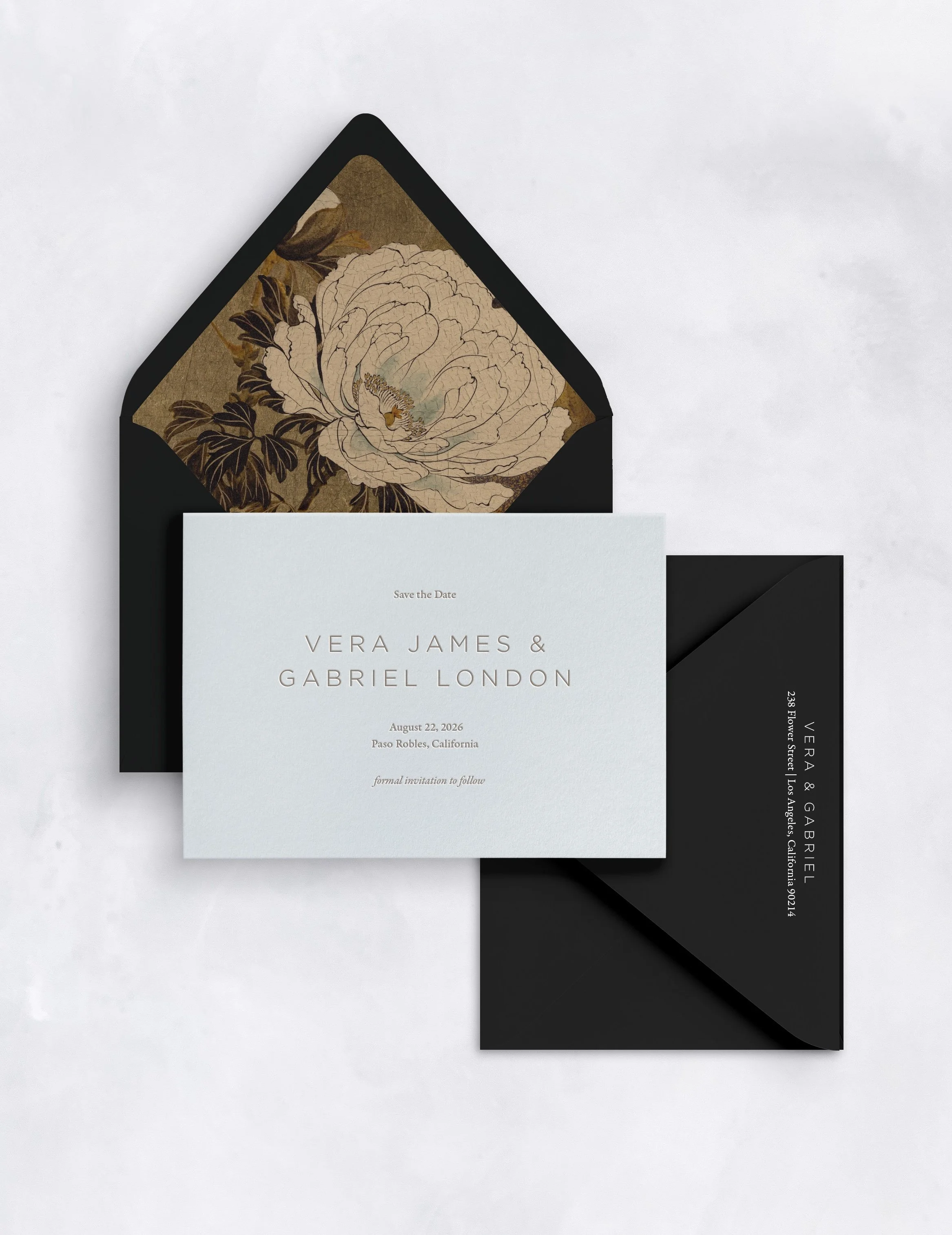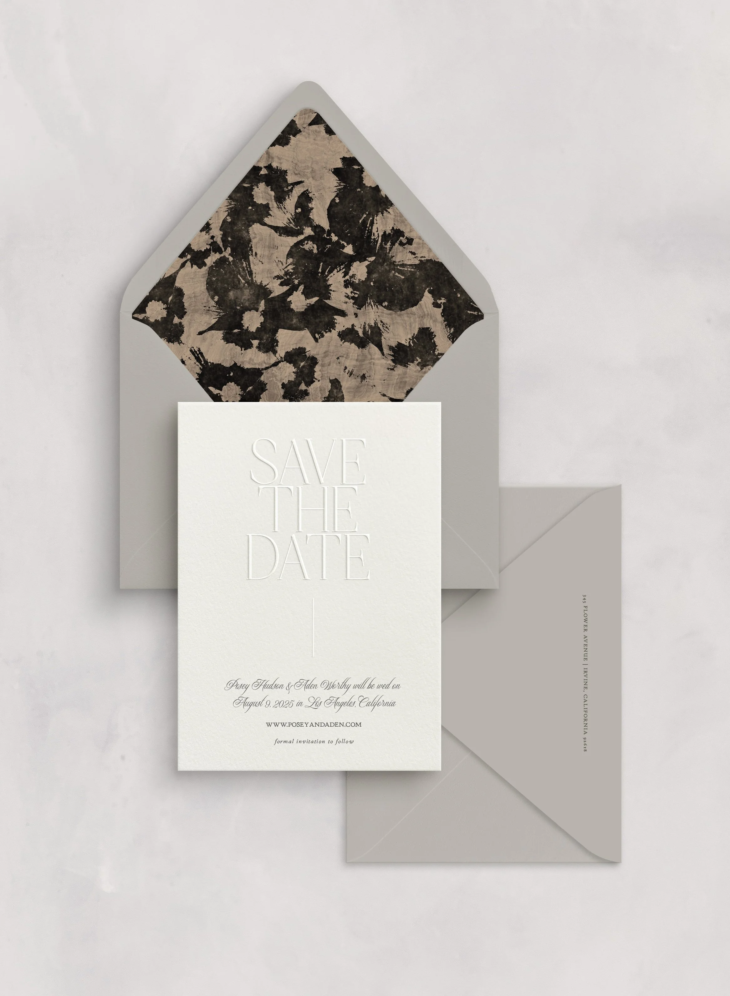 The Posey Save the Date is for the modern romantic couple looking for bold, chic invitation paper.