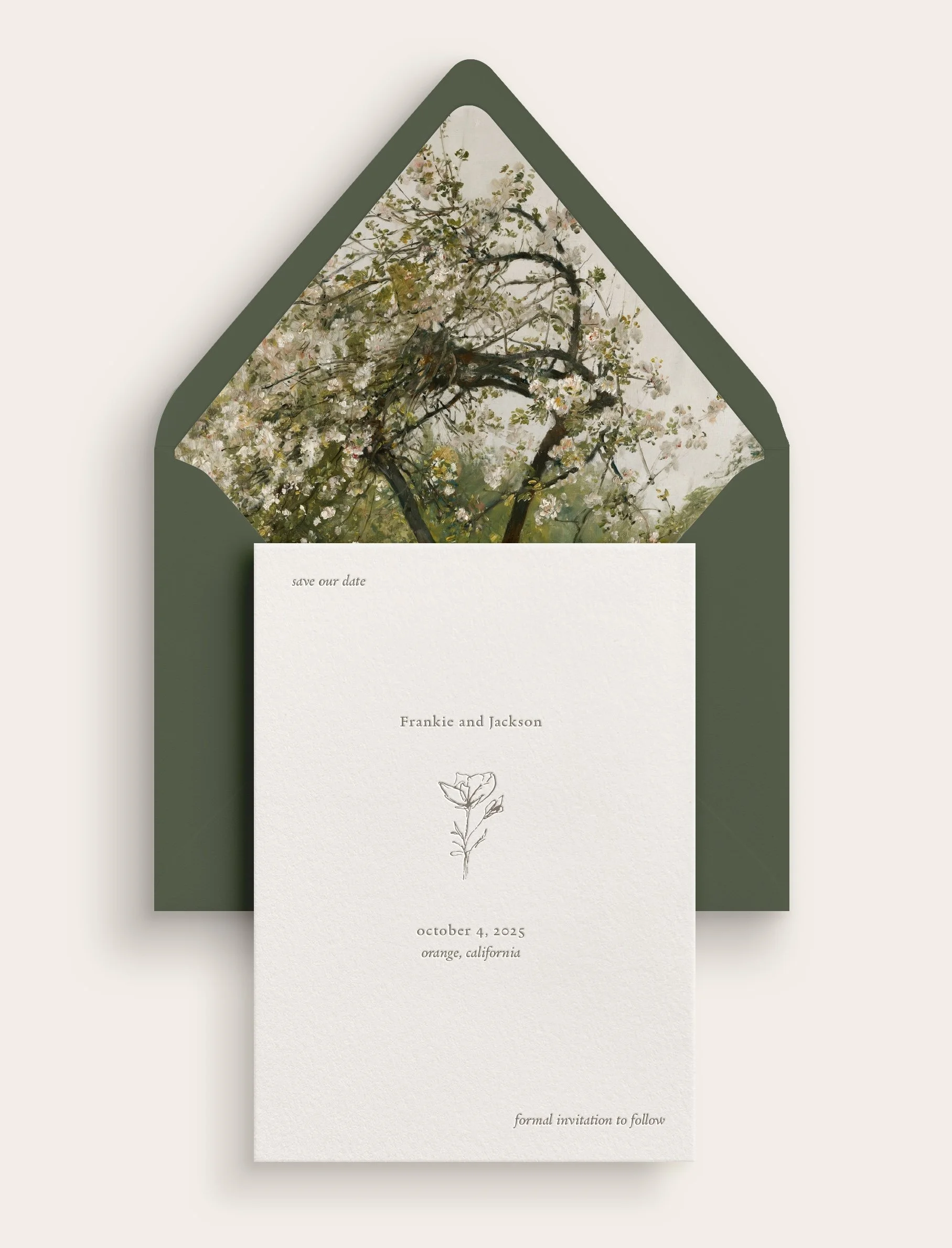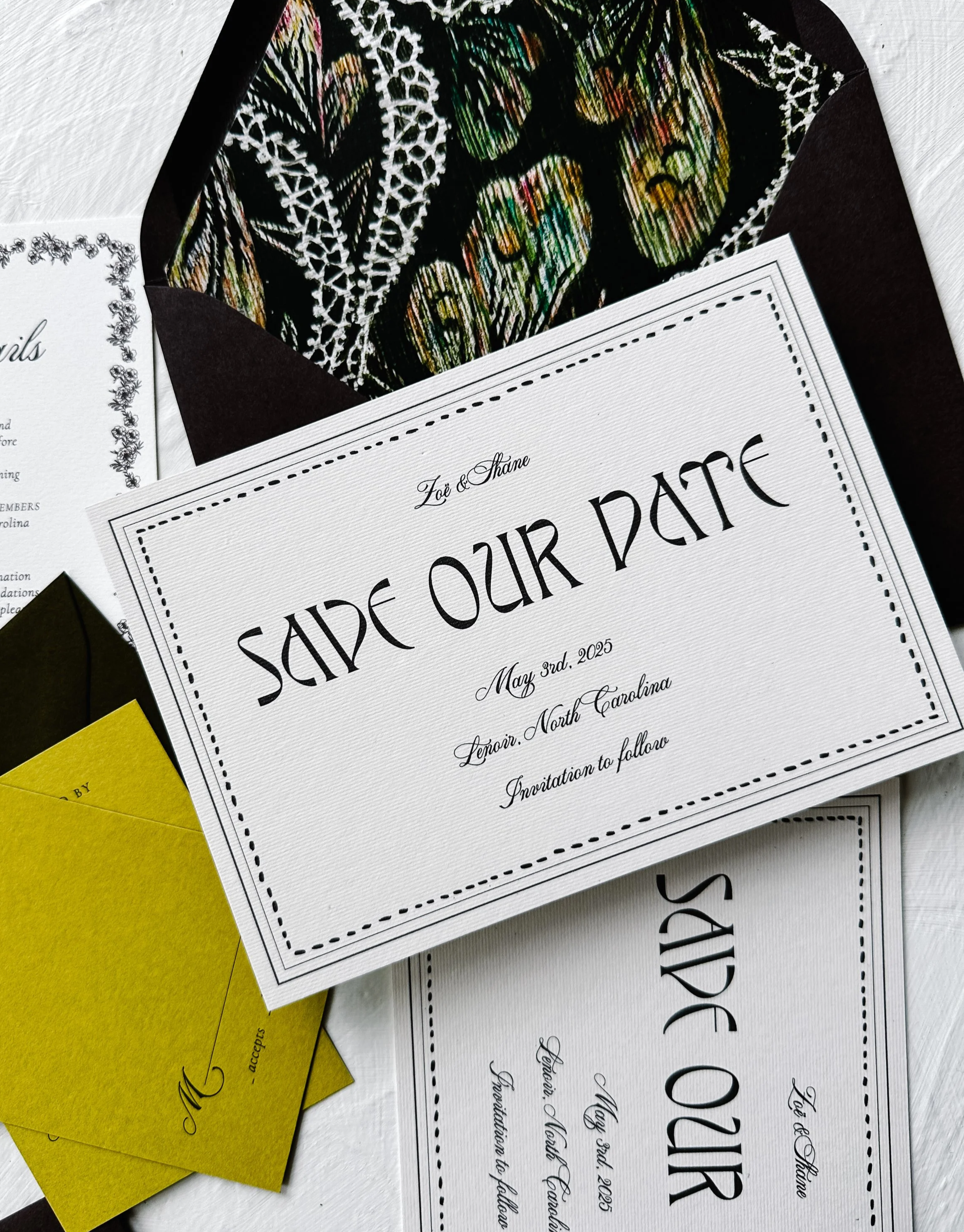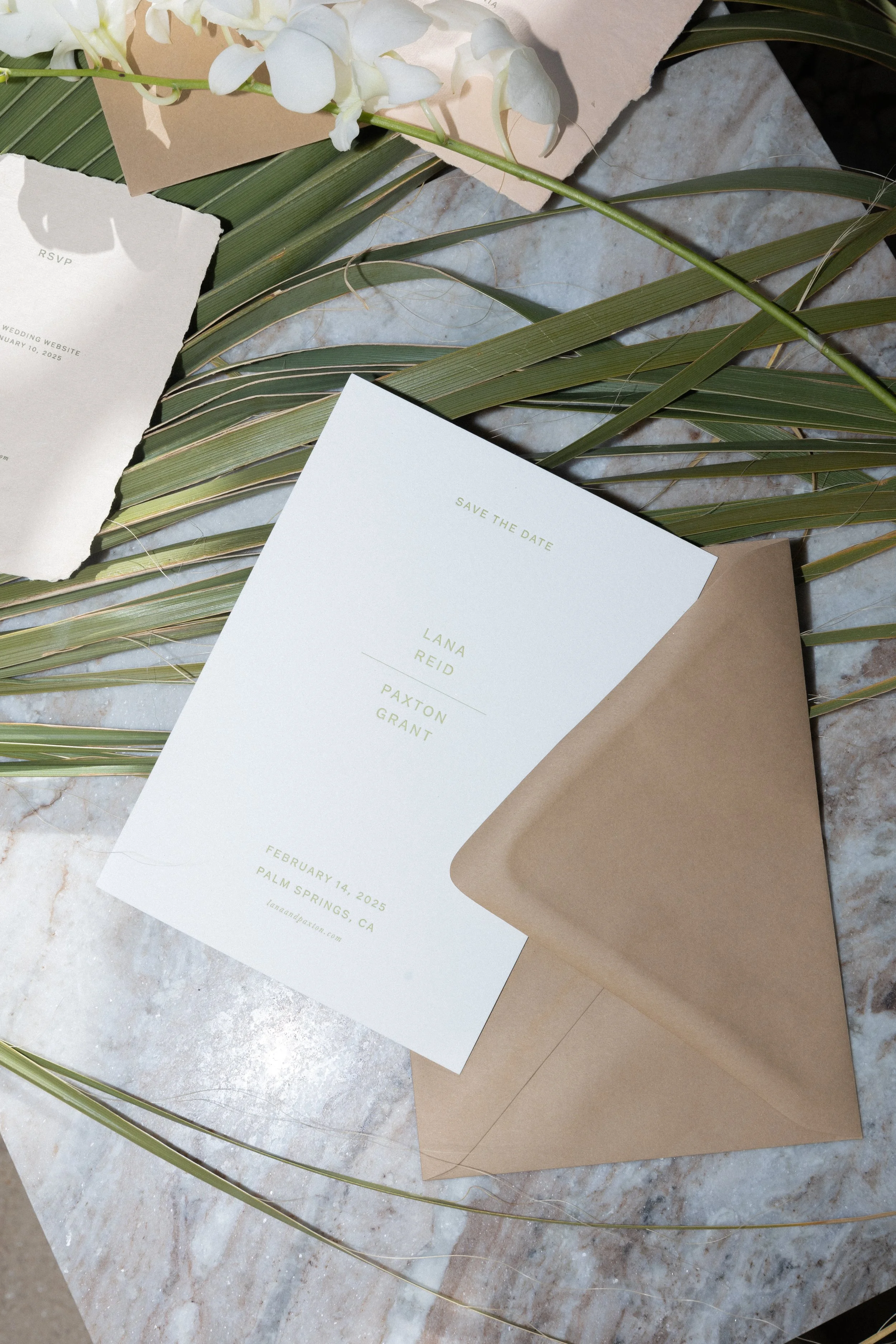 Choose a Collection design with a typeface and layout that you love as those elements will remain the same. Your suite will then be personalized with your wording and chosen color palette inside of your design questionnaire. See our Ordering Guide for curated customization options.
