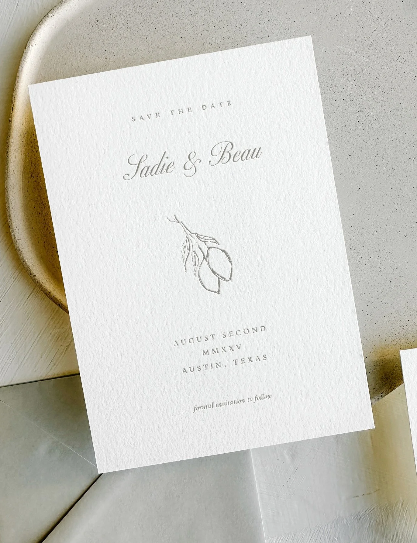 The Sadie Save the Date 01 // Greige ink on our soft white 110# cotton card
